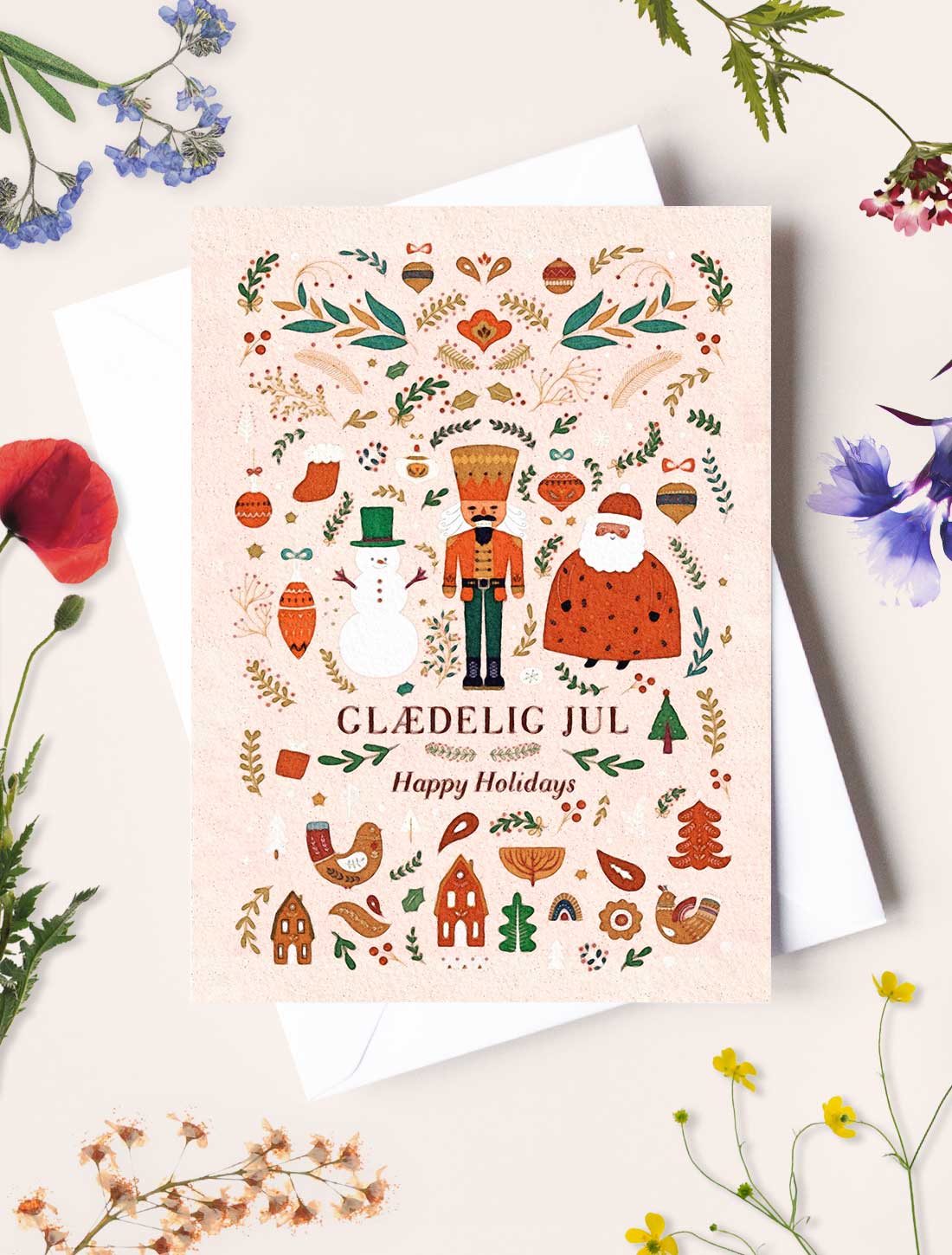 Våra miljövänliga planterbara julkort är tillverkat av återvunnet papper och innehåller en unik blandning av vilda blomfrön bestående av vallmo, tusensköna och myosotis. Efter att mottagaren har njöt av din hälsning kan kan kortet planteras och vilda blommor springer fram. Det är en omtänksam gåva som är både funktionell, estetiskt tilltalande och fördelaktig för den biologiska mångfalden på vår planet.