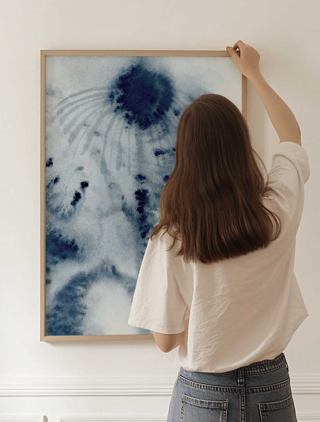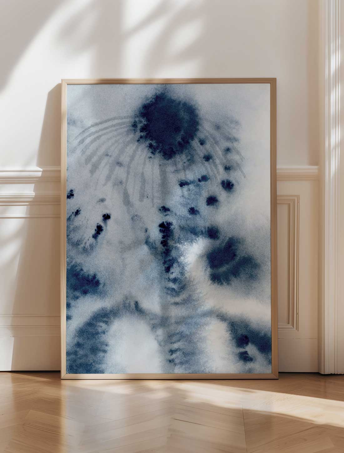 Affischen ”Géraldine” är ett drömlikt konsttryck med ett organiskt och poetiskt formspråk i blå nyanser. De mjuka formerna framhävs av en harmonisk blå färgpalett där djupa och ljusare blå toner smälter samman och skapar ro och balans.